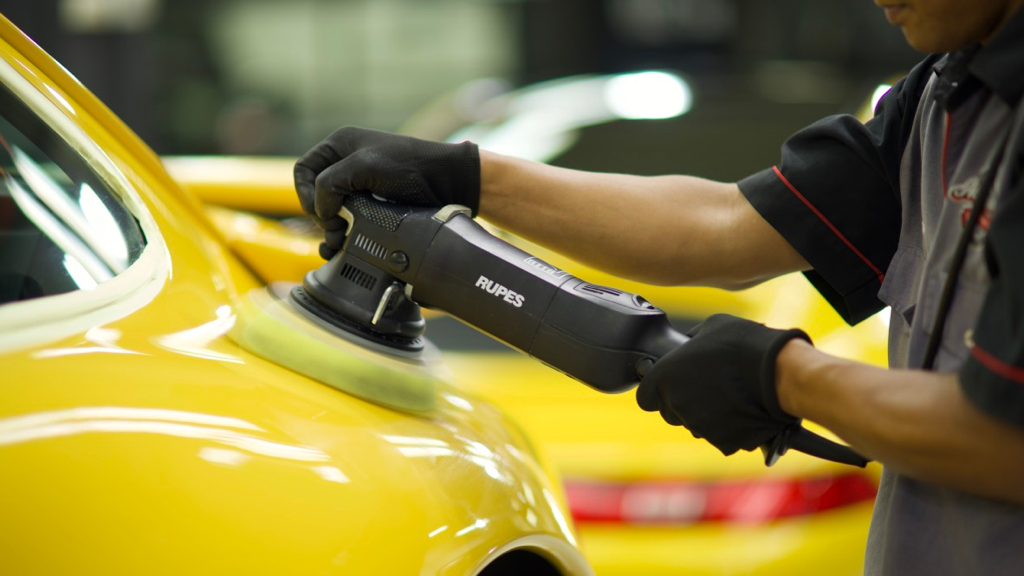 Using our array of RUPES Bigfoot polishers, we are using an advanced multi-stage surface correction technique to craft this high gloss surface. The process of automotive paintwork detailing is specific to each vehicle and is designed to exacting variances in the paintwork. The correction process begins with a detailed paintwork analysis which determines the thickness of paint around the vehicle. Based on a map created of the varying thickness of the paintwork, our technicians will perform the corrective work to ensure the paintwork is not only glossy, but exhibits a perfectly reflective surface.