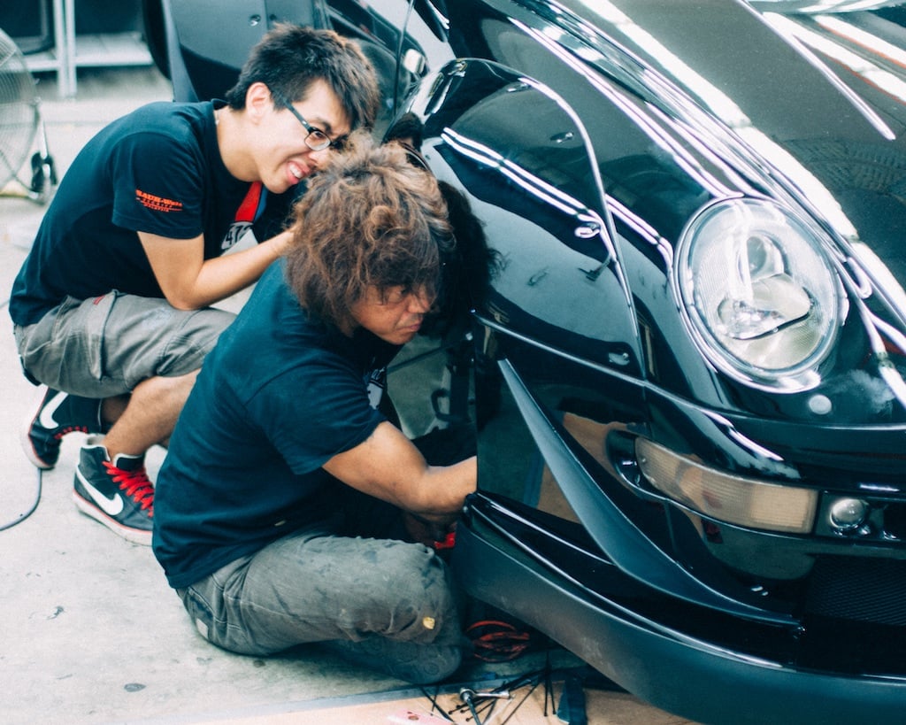 The morning began with a gleaming Porsche 993 Targa already prepped by AutoDetailer Studio’s crew sitting ready for Nakai San’s arrival. A man of a few words, he began with preparing all the fibre-reinforced polymer panels for fitting. His meticulous handwork with just basic tools and a keen eye makes for a sight to behold.