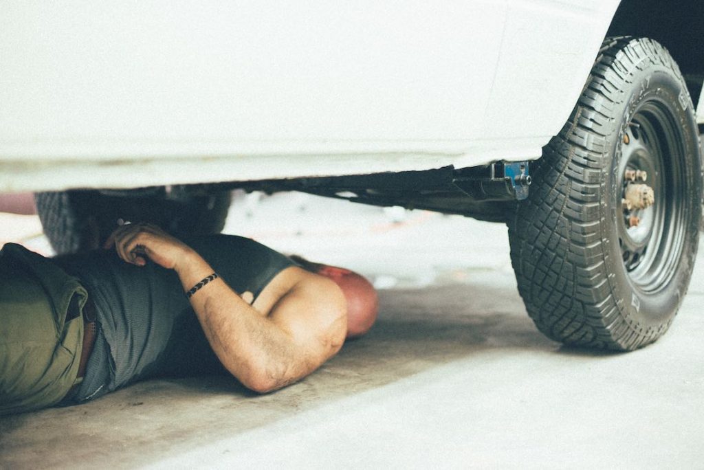 Tom does an undercarriage inspection before taking ‘Pickle’ out into the sunshine.